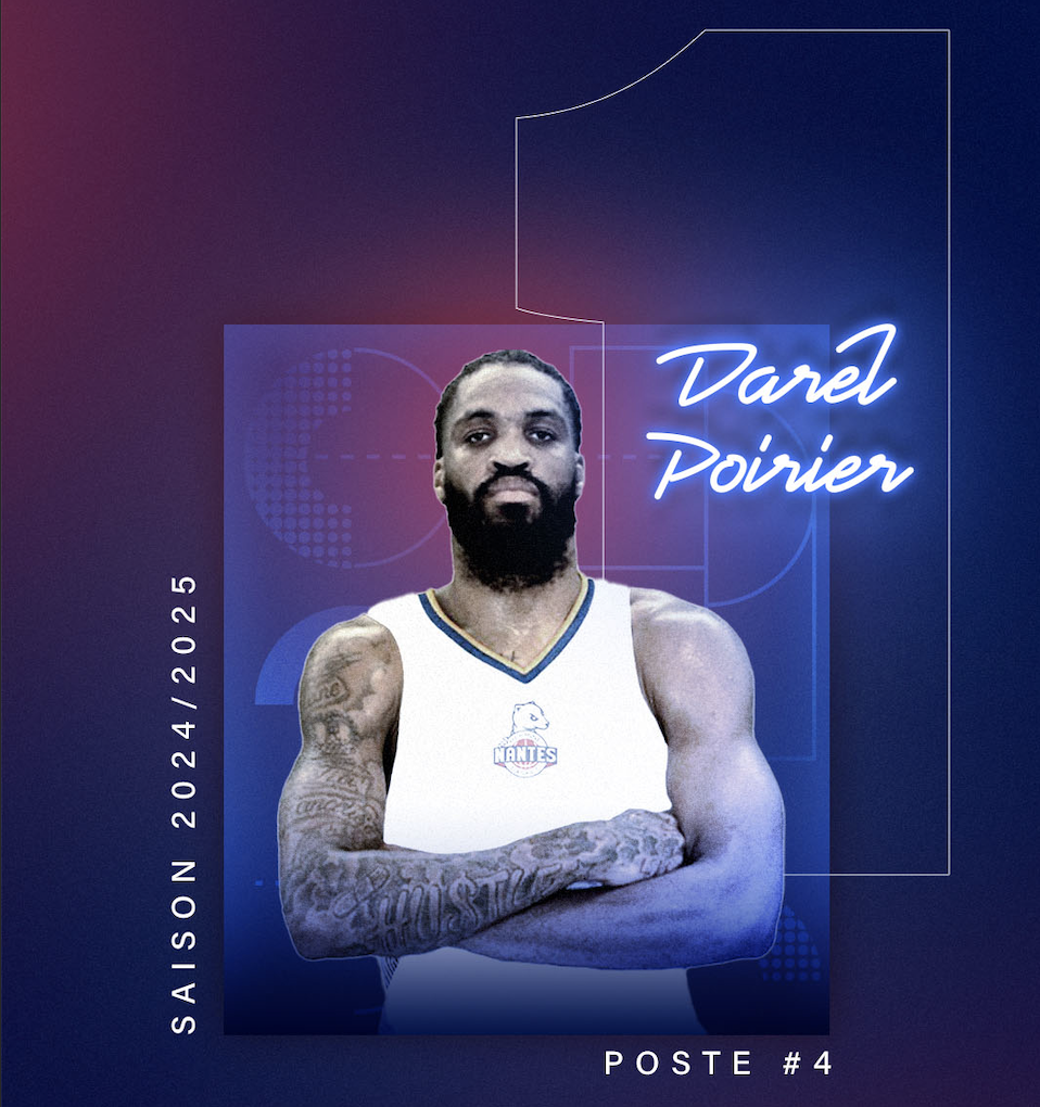 Globetrotteur, Darel Poirier (27 ans, 2,07m) a foulé les parquets de nombreux championnats. Formé à Cholet Basket, il a ensuite pris la direction de Charleville-Mézières (ProB) avant de passer 2 saisons en G-league aux Etats-Unis. Il a également connu la première division en Grèce ainsi que la deuxième division espagnole. En France, Darel Poirier a aussi joué pour Le Mans, Cholet et Pau, pour enfin retrouver la Pro B à Angers l’an dernier.