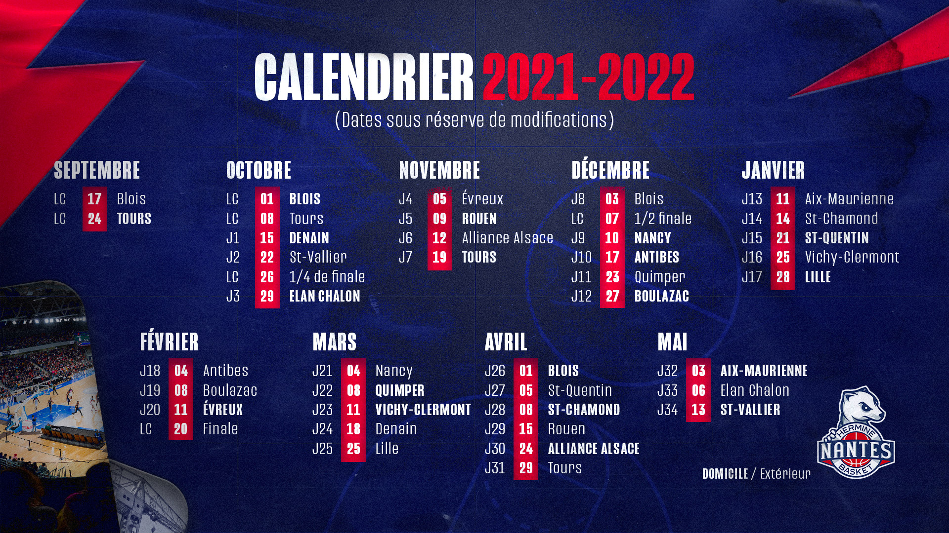 Les Nantais débuteront l’exercice 2021/2022 avec la traditionnelle phase de poules de Leaders Cup. Quelques nouveautés au programme puisque le NBH sera opposé à Blois et au nouveau pensionnaire de la division, Tours. Le championnat démarrera quant à lui le 15 octobre avec l’accueil de Denain.