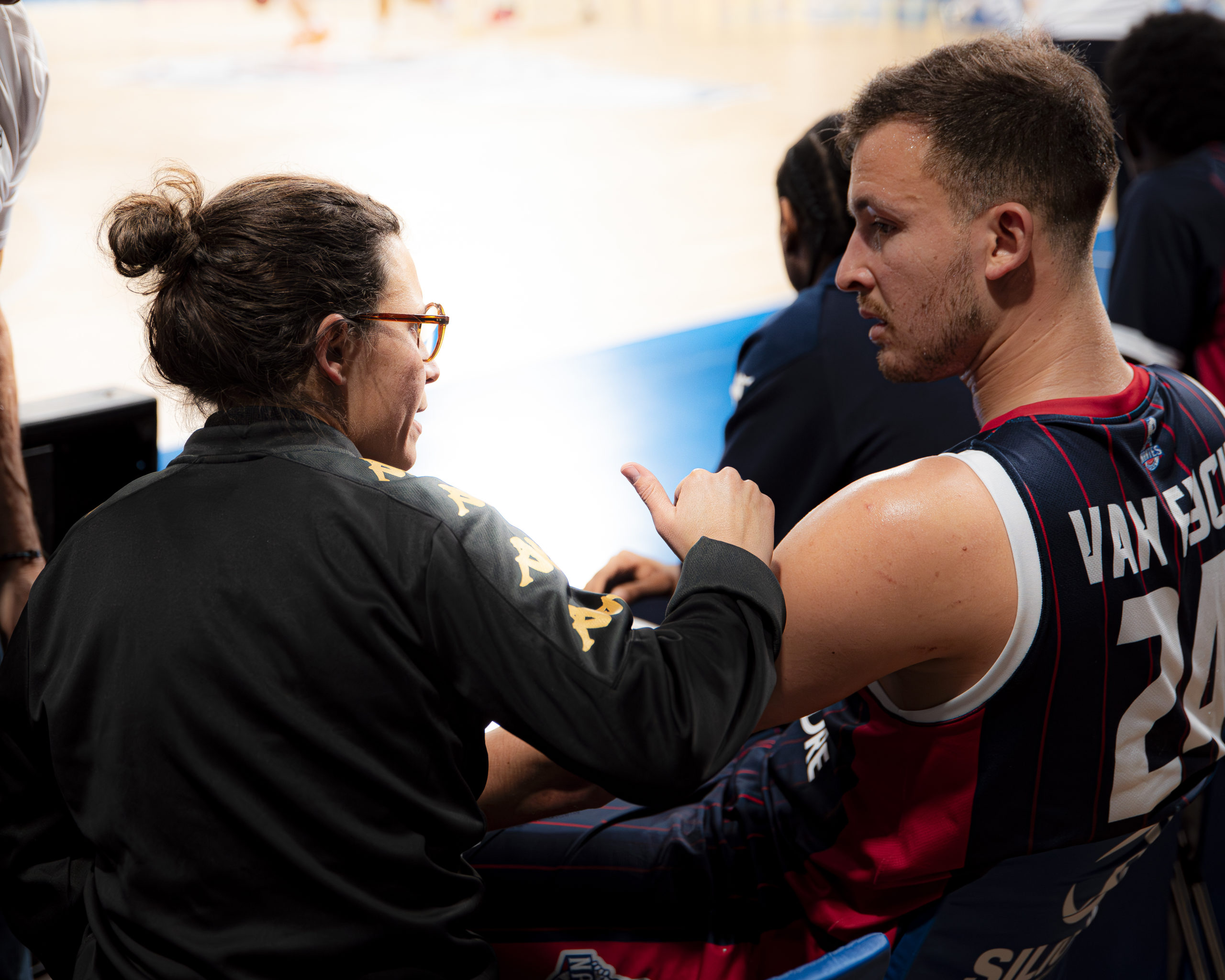 « La présence et l’expérience de joueur de haut niveau d’Abdou, lui permet d’effectuer une traduction du langage médical parfois difficile à interpréter, vers un langage basket souvent plus clair et moins inquiétant pour le joueur, voire pour le coach » apprécie Chloë.