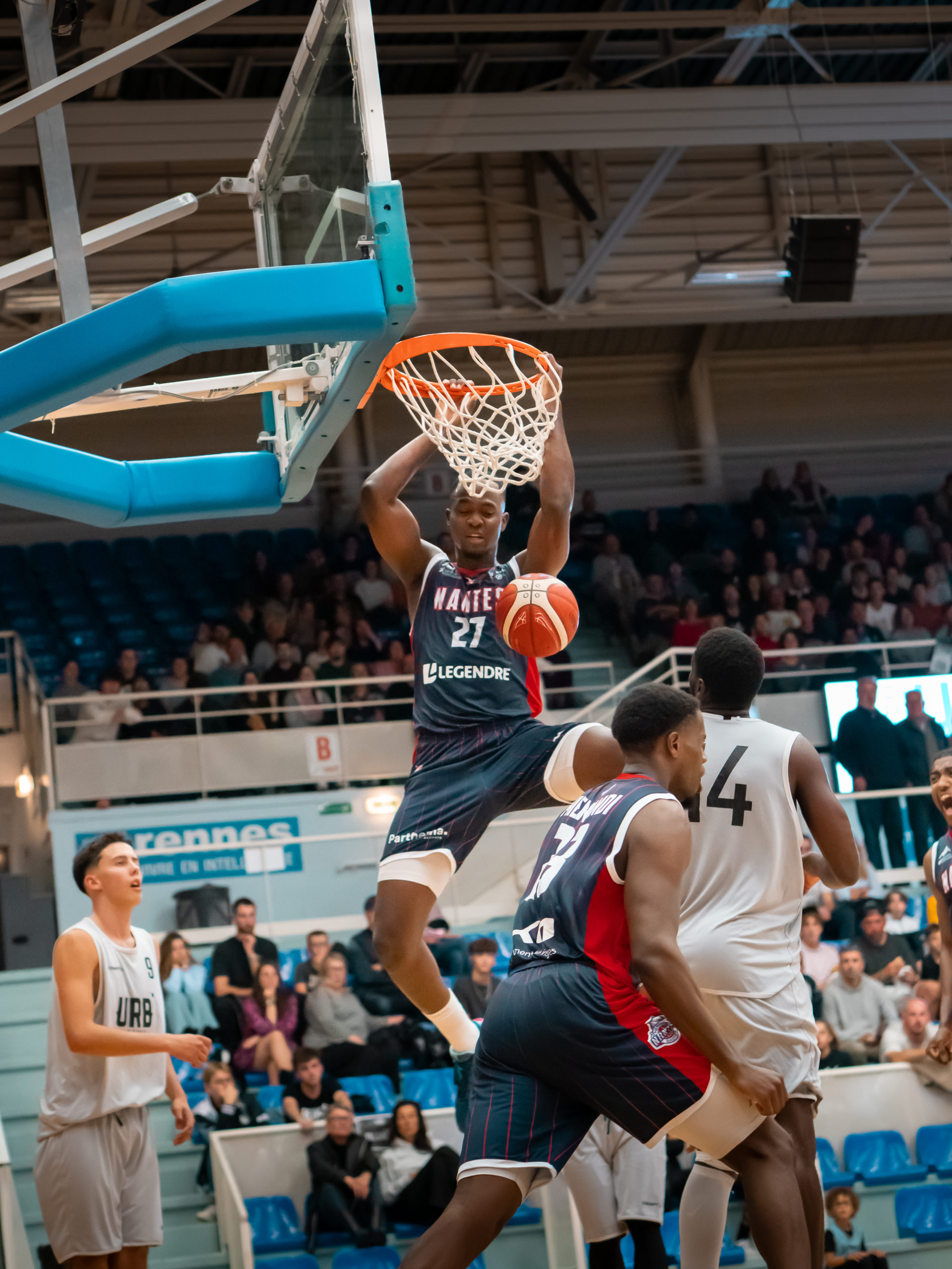 Privés de Kyle RYDLEY (poignet) et de Christopher MANERLAX (genou) préservés pour l’ouverture de la saison le 19 Septembre, les nantais démarraient la rencontre avec un « handicap » de 7 points au tableau d’affichage conformément à la différence de niveau entre les deux formations. De ce fait et devant l’énergie des joueurs rennais, le NBH concédait le premier quart temps sur le score de 32/20 et atteignait la pause avec un retard de 9 unités (53/44).