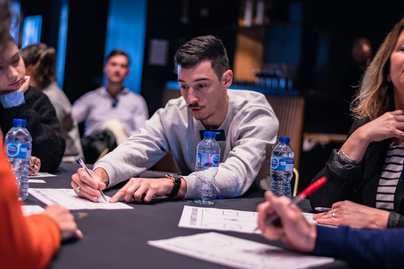 Les entraîneurs adjoints Jean-Philippe Besson et Joris Mercier ont ensuite pris la parole pour présenter leur rôle au sein du staff et expliquer les différentes missions qui composent leur quotidien : préparation tactique, analyse des adversaires, accompagnement des joueurs et gestion des entraînements.